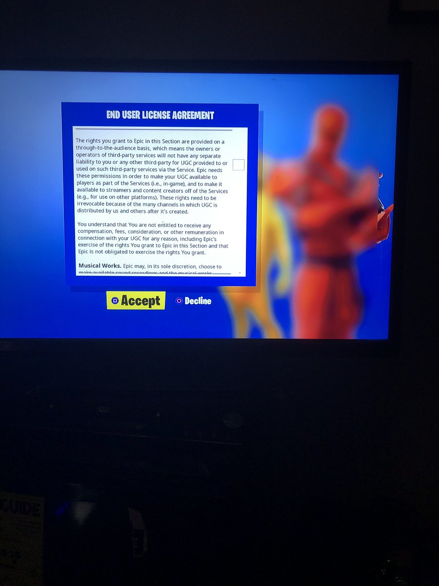 A EULA specifies in detail the. Press accept to keep your skins in Fortnite if you click decline you will lose all your skins. Up to 3 cash back Fortnite End User License Agreement 1 - Free download as PDF File pdf Text File txt or read online for free.